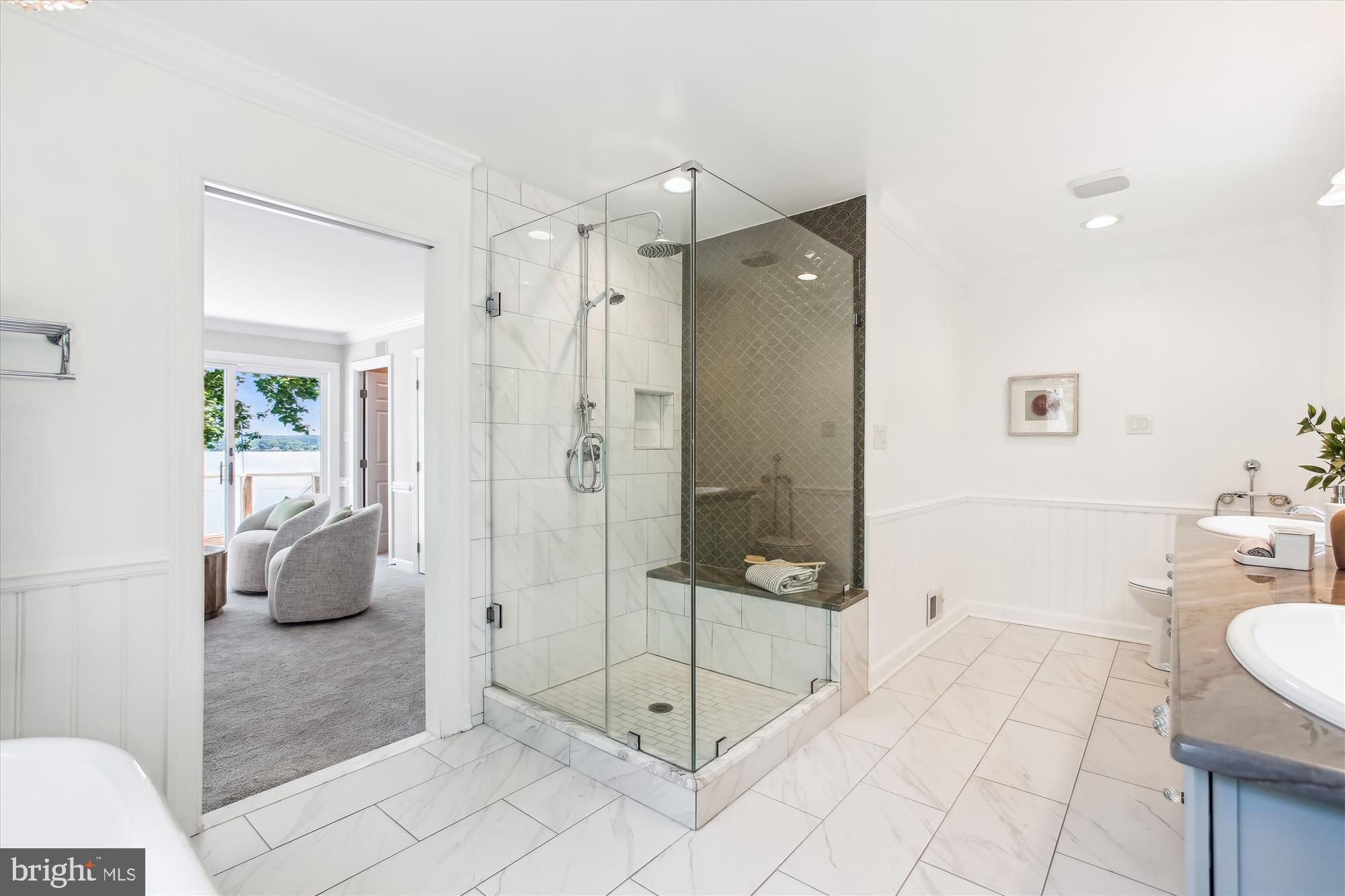 Potomac River at the tip of the Mason Neck Peninsula where eagles soar and the river runs deep. This beautifully maintained home with superior elevation offers a resort lifestyle, a place of serenity to unwind and enjoy the surrounds of calming waters and abundant nature. Experience magical sunrises from this well-designed home, sited on a .73 ac lot capturing panoramic vistas. Tucked away in a perfectly secluded setting adjoining the community 7-ac wooded parkland, with 140 Ft of deeded waterfront and riparian rights, a private sandy beach, and dock with a covered boat lift. The original residence has been thoughtfully renovated and complemented by a two-story extension, offering expansive living spaces with ample room for indoor and outdoor entertaining. The home features 5300+ Fin SF on three levels, a 2-car garage and large garden shed. The waterside boasts great outdoor space with a deck spanning the entire length of the main level and balconies off the library and primary suite. Enjoy professionally landscaped grounds, mature plantings & shade trees, landscape lighting and irrigation system throughout. The front entry features ample parking for 10+ cars, a stone walkway, new composite shake siding, and a redesigned portico. The main floor boasts an open layout with seamless connectivity, complemented by quality finishes throughout. It includes crown and chair moldings, recessed lighting, and new solid hardwood natural hand scraped Hickory floors spanning the main living areas. The foyer leads to a casual living Rm with fireplace, separate dining Rm and combination family-library-home office with refinished hardwoods, fireplace, and custom built-ins, all with river views. Flowing seamlessly to the riverside breakfast room and adjoining kitchen, featuring a large island, granite countertops and stainless appliances, and connecting walk-in pantry/mud room leading the garage and rear deck. The upper lvl boasts 3 BR's & 2 FBA's. The spacious primary suite features a private sitting room with two walk-in cedar closets, and a riverfront balcony. The bedroom boasts floor to ceiling windows overlooking the river, high ceilings with cove lighting and a spiral back staircase accessing all three levels. The in-suite fully renovated primary bath displays luxury finishes with a claw foot soaking tub, oversized walk-in shower, and dual vanity’s with distinctive granite counters. The walkout lower level with brand new carpeting throughout includes a large family Rm with fireplace, plenty of space for gaming tables, home gym, the 4th riverside bedroom and sitting Rm, and hall full bath. This level includes a spacious laundry Rm and storage areas. The special highlight of this home is the 1600 sf riverfront solarium with its expansive walls of sliding doors and glass roof. Offering 180˚ water views, this sun-drenched space offers incredible opportunities for large gathering entertainment, a multitude of unique living spaces from full scale home gym, large game room or just a relaxing sunroom. The adjoining bath is well suited for a pool bath. Mason Neck is a nature lover’s paradise and boaters delight with access to a community dock and several nearby marinas. Neighborhood Amenities: include a secure waterfront 7-acre park & beach with pavilion, grilling stations, volleyball, boat launch & pier, tennis-basketball courts, and tot-lot. Mason Neck is surrounded by thousands of acres of parkland & sanctuaries, 27 miles to DC, 30 mins to Old Town Alexandria, and 6 miles to Ft. Belvoir. Nearby VRE Station, EZ I395 access, nearby bike & hiking trails, Pohick Bay golf course, camping, & riding stables all within minutes. Drone video in tours!! Land lord responsible for Yard maintenance. Do not miss out on this special waterfront home!!